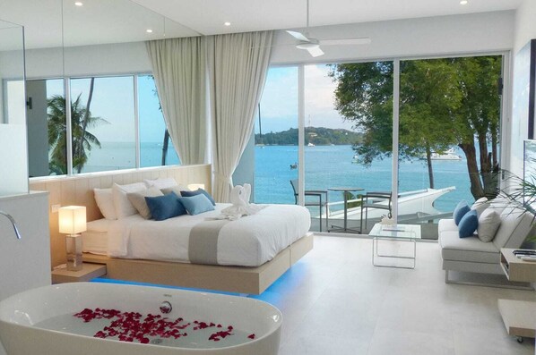 Tutte le camere sono ampie e lussuose con soffitti alti, con viste mozzafiato, finestre dal pavimento al soffitto, balcone o terrazza privati e tutte godono di servizi privati. Utilizziamo lussuosi materassi con rivestimento in memory foam e la migliore biancheria da letto in cotone egiziano. L'aria condizionata con modalità silenziosa e i ventilatori a soffitto silenziosi ti mantengono fresco.