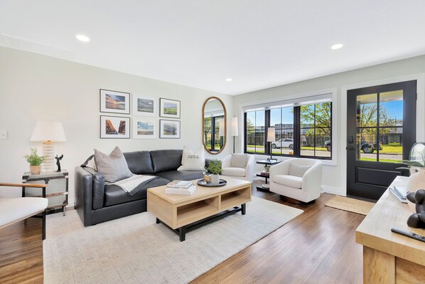 Step into style and comfort at this thoughtfully designed home, where modern organic touches meet relaxed Midwestern charm. Ideal for families, small groups, or work travelers, this single-level home offers an open-concept living, dining, and kitchen area perfect for gathering.
