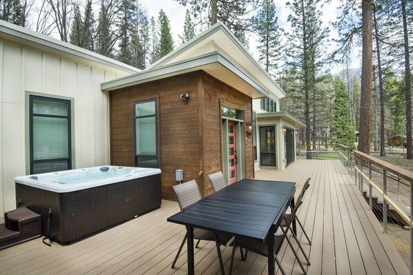 Immerso nel Parco Nazionale di Yosemite nella pittoresca cittadina di Wawona, lo Spring Meadow Retreat è una splendida cabina su misura con 3 camere da letto, 2 bagni e Gold, che può ospitare fino a sei persone. Spring Meadow è una nuova e moderna cabina (completata a marzo 2019) ed è situata su un grande terreno circondato da alberi di quercia, pino e cedro. C'è una rampa di accesso amichevole ADA che conduce alla casa e un bellissimo ponte con una vasca idromassaggio idromassaggio per sei, un barbecue a gas e una splendida vista sulle cime delle montagne. La casa si trova su un torrente tutto l'anno con un sacco di spazio per esplorare. Ci sono bellissimi pavimenti di superficie dura con grandi finestre che si affacciano sulla foresta nazionale. La cucina dispone di un open space con ripiani in granito, elettrodomestici in acciaio inossidabile, un frigorifero con fabbricatore di ghiaccio, una cucina elettrica a cinque fuochi, lavastoviglie, forno a microonde, macchina per il caffè, Keurig e un portaspezie per cucinare i tuoi piatti preferiti. Il soggiorno ha un camino a gas, TV satellitare a schermo piatto e WiFi, oltre a molti giochi, libri e film per il divertimento di tutti. La camera da letto principale dispone di un letto King adiacente ad un bagno accogliente ADA. La camera da letto due ha un letto matrimoniale con un lavandino e si collega a un bagno Jack & Jill (condiviso). Tre camere da letto ha due letti singoli, un lavabo vanità e si collega anche al bagno Jack & Jill. Aria condizionata / ventilatori di calore e soffitto sono in tutta la casa. Questa cabina ha anche una lavatrice e asciugatrice in grado di impilare. I giochi all'aperto includono dardi di terra e buche di mais. Spring Meadow ha tutto! Questa casa è senza animali domestici.