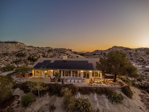 ☆Nestled on top of a mountain, with spectacular views, Surrounded by boulders and full of wildlife, this spacious luxury 4 bedroom 2 bath Villa is the ultimate spot for friends and family gatherings, overlooking the spectacular mountains range of Joshua Tree National Park •Extreme Privacy •Only 15 min to Joshua Tree town •10 min to Pioneertown •5 Mins to stores and restaurants •Surrounded by beautiful Boulders •Fully Equipped Kitchen •Outdoor Jacuzzi •PATIO •BBQ, Firepit and more...