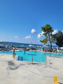 Sistemazione con una piscina stagionale all'aperto, ideale per una vacanza in spiaggia con tutta la famiglia