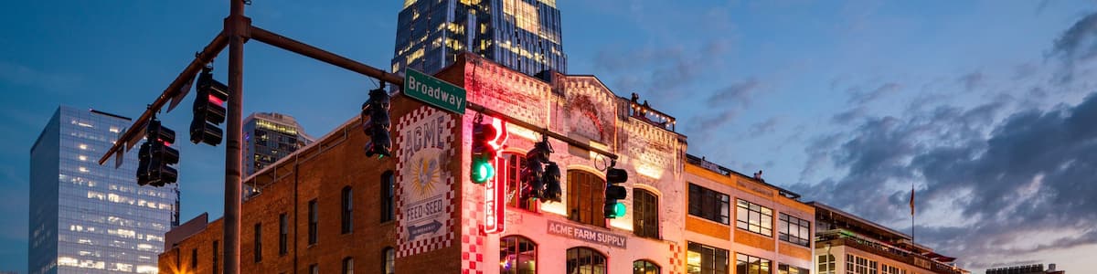 La vibrante scena notturna e i locali di musica dal vivo sono solo alcune delle attrazioni di Centro de Nashville. Altre due tappe fondamentali nella zona sono Broadway e Ryman Auditorium.
