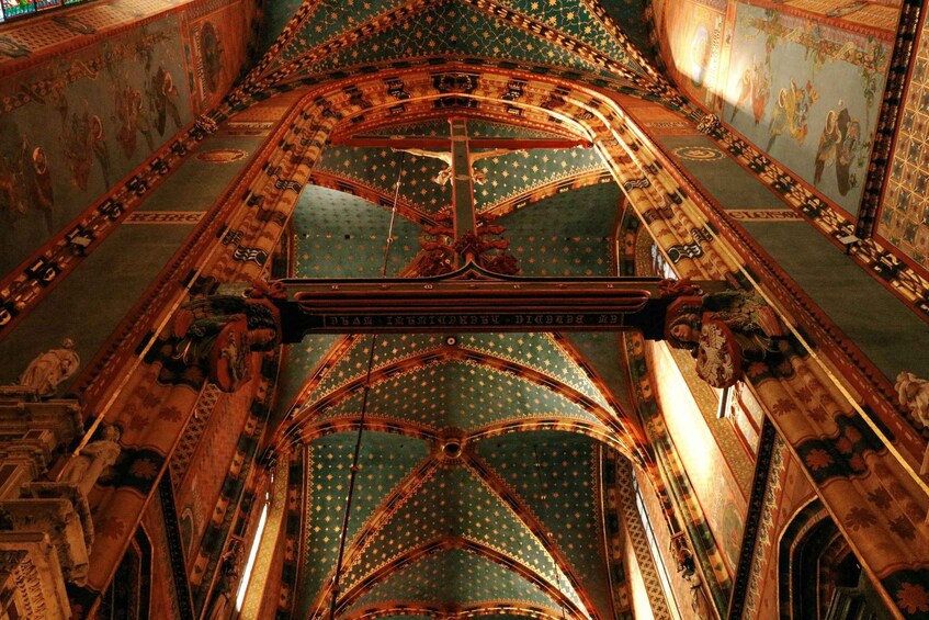 Il momento clou del tour è l'ingresso alla Basilica di Santa Maria, che ospita il magnifico altare gotico Veit Stoss, un capolavoro dell'arte e della narrazione medievale. La tua guida ti spiegherà i suoi affascinanti dettagli e la sua storia, aiutandoti ad apprezzare la sua importanza per l'identità di Cracovia.