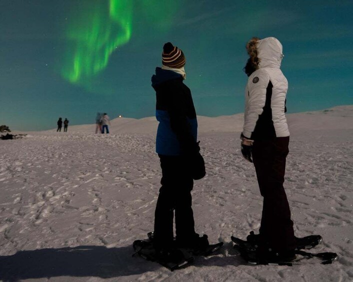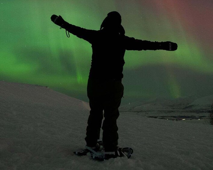 Da Tromsø: Escursione serale con le racchette da neve e funivia di Fjellheisen