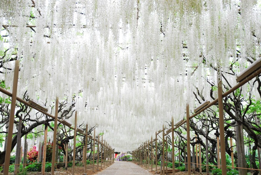 • Passeggia attraverso un tunnel mozzafiato di 80 metri di glicini bianchi.