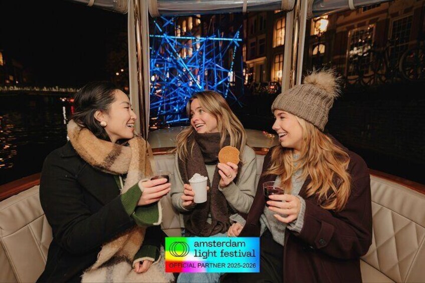 Amsterdam Light Festival : Crociera riscaldata Saloon Boat con bevande calde