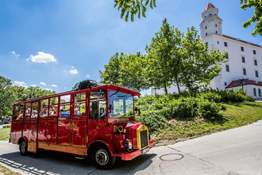 Scegli questa versione estesa del Tour del Castello con vista panoramica di Bratislava. Scopri il nuovo Teatro Nazionale Slovacco e altri scorci interessanti. Include una pausa di 15 minuti allo Slavin Memorial e una pausa di 20 minuti al Castello.