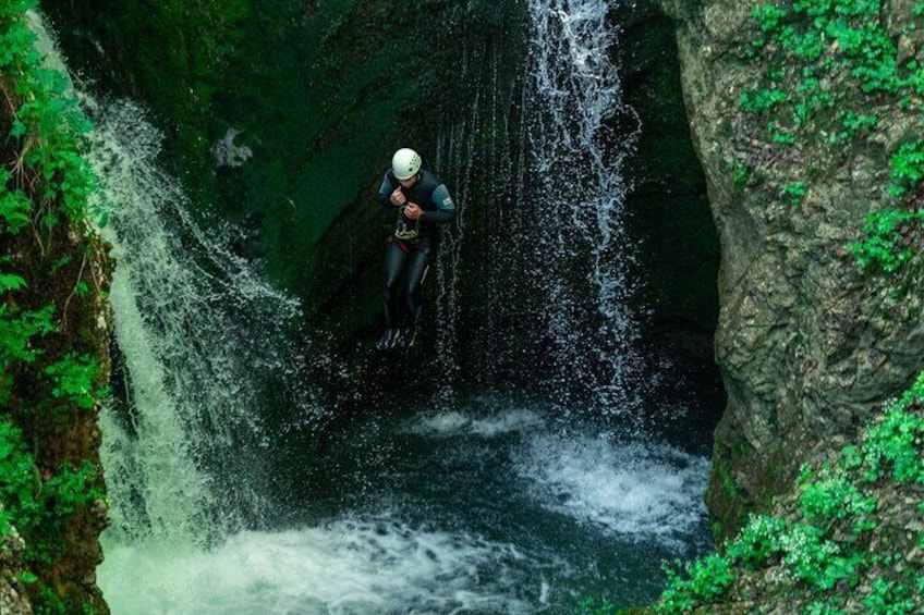 opzione 1: Canyoning Bled è un'esperienza indimenticabile di 3 ore. Nuotare, saltare, scivolare su toboga naturali, giochi e divertimento sono ciò che compone questa nuova avventura