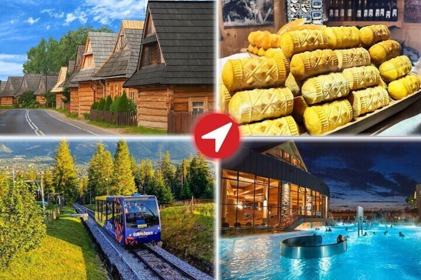 Descrizione dell'opzione: Tour di un'intera giornata a Zakopane che include bagni termali, funivia, degustazione, mercato locale e via Krupowki