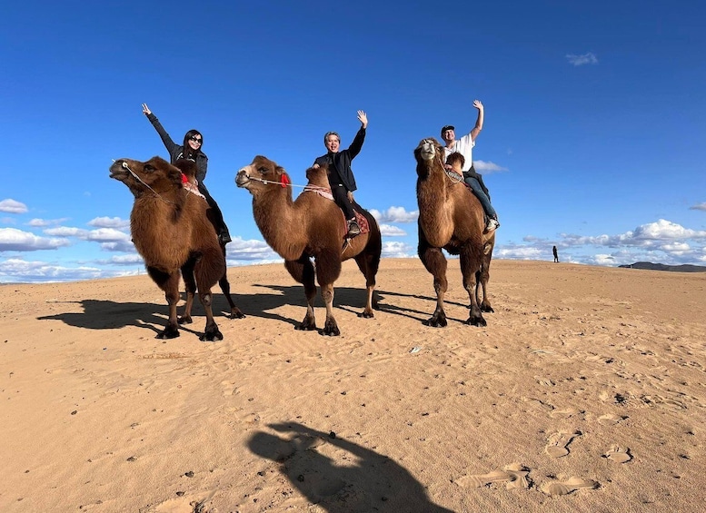 Immergiti nella vita del deserto con una passeggiata a dorso di cammello attraverso gli aridi paesaggi del Semi Gobi, ammirando le dune e le montagne della Mongolia. Verrai riaccompagnato in hotel intorno alle 16:00.