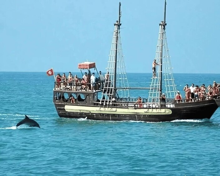 Djerba: Escursione in barca dei pirati all'isola dei fenicotteri con pranzo