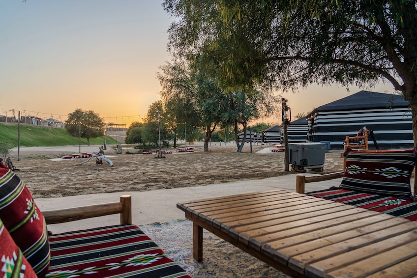 Dune bashing, sandboarding, caffè e dolci arabi, trucco arabo (abito per signore e signori), giro in cammello, henné, shisha, barbecue e spettacoli di intrattenimento ad Al Khayma.