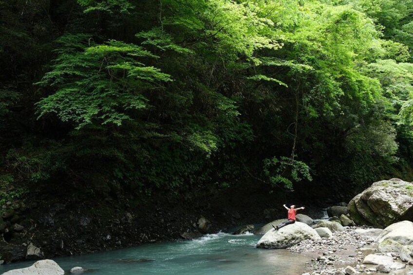 Questo punto del fiume è anche buono per Shinrin-yoku o bagni nella foresta. Respira l’aria fresca, ascolta il rumore dell’acqua e riposa gli occhi sulle macchie di luce che arrivano attraverso le foglie e i rami. Non devi fare nessuna visita turistica e ti troverai molto rilassato.