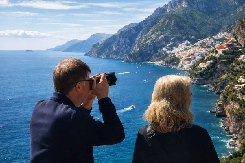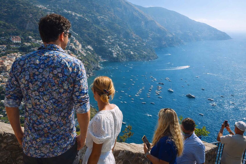 Successivamente, esplora l'incantevole borgo di Positano, noto per le sue case sulla scogliera e i suoi negozietti. Avrai tempo libero per rilassarti sulla spiaggia, fare shopping di moda a Positano o gustare un gelato ammirando la vista spettacolare.