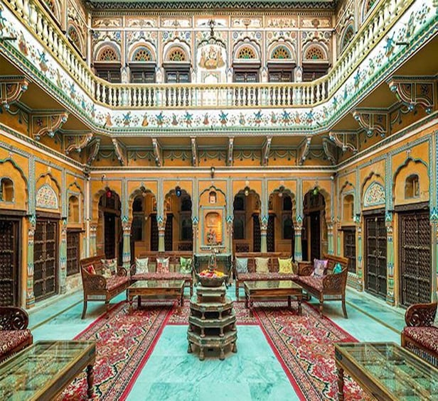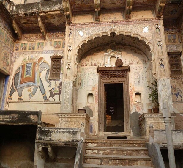 Inizierai il tuo tour di Mandawa ottenendo l'accesso ad alcuni degli Havelis più famosi della zona. Alcuni degli Haveli da non perdere sono: Hanuman Prasad Goenka Haveli, Goenka Double Haveli, Mohan Lal Saraf, Gulab Rai Ladia Haveli, Jhunjunwala Haveli e Murmuria Haveli. Assisti alle opere d'arte davvero uniche che adornano le pareti dell'Haveli prima di gustare un boccone al Castle Mandawa per pranzo.