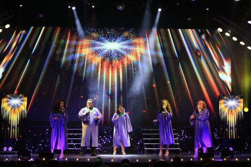 Il più GRANDE piccolo spettacolo negli Smokies, con classici successi country, soul agitante favoriti gospel, un cenno a Broadway con melodie familiari, e un saluto alle nostre forze armate degli Stati Uniti in uno stand ai vostri piedi vestito completo saluto militare.