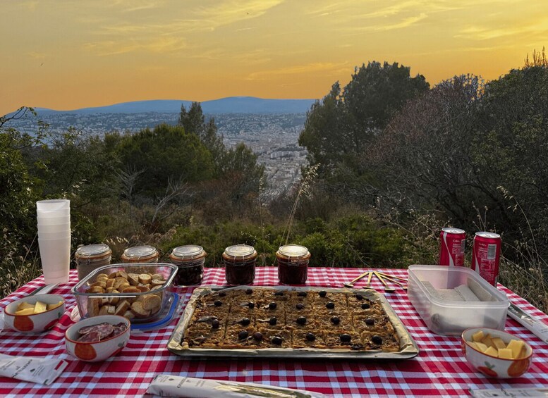 Quando il sole scende sotto l'orizzonte, la luce è perfetta per le foto. La tua guida sarà lieta di scattare le tue foto o di consigliarti le angolazioni migliori (senza bisogno di filtri :). Una volta che il sole è tramontato e i bicchieri sono vuoti, torna dolcemente a Nizza.