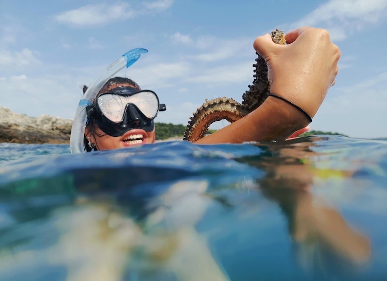 Ti forniremo tutta l'attrezzatura necessaria per la tua esperienza di SNORKELING. Indossa la maschera e immergiti nel vivace mondo sottomarino pieno di pesci colorati, ricci di mare, stelle marine, cetrioli di mare e molto altro ancora!