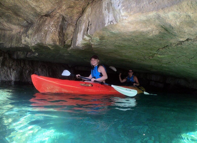 I nostri kayak doppi sit-on-top sono progettati per pagaiare in acque aperte: sono sicuri, stabili, comodi e adatti ai principianti. Forniamo istruzioni complete per il kayak e lo snorkeling, insieme a tutta l'attrezzatura di sicurezza necessaria.