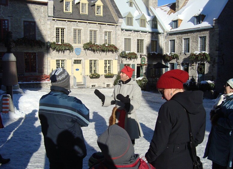 Seguendo una guida turistica locale appassionata ed esperta, scoprirai più di 400 anni di storia. Questo tour invernale a piedi dell'Old Quebec ti condurrà innanzitutto attraverso le strade innevate della città murata. Ammirerai il famoso Fairmont le Château Frontenac, farai una sosta sulla Dufferin Terrace e godrai del suo punto panoramico sul fiume St-Lawrence. Passeggerai per le piazze del vecchio Quebec, per gli orgogliosi monumenti e per le bellissime chiese come la Cattedrale della Santissima Trinità e la Cattedrale e Basilica di Notre-Dame-de-Quebec. La tua guida in costume d'epoca ti condurrà poi nel quartiere di Petit-Champlain, culla del fatto francese in Nord America, per farti apprezzare questa parte straordinaria, unica e pittoresca di “le Vieux-Québec”, all'altezza del fiume St-Lawrence.