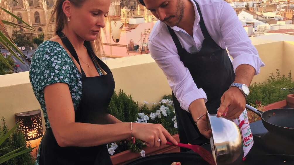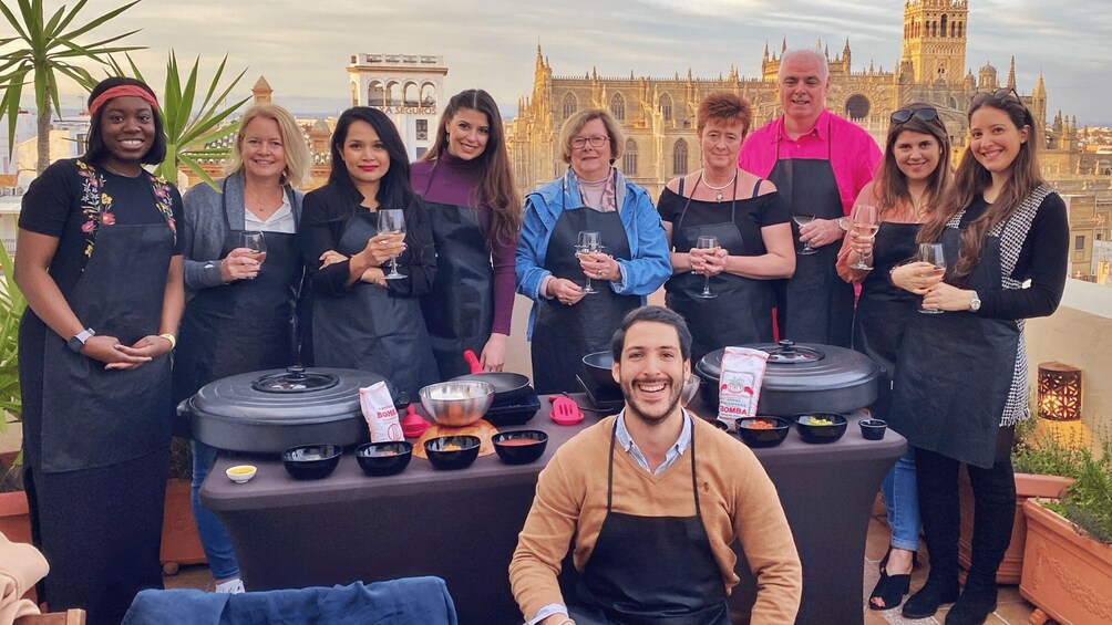 Partecipa a una lezione privata di cucina sulla paella con vista esclusiva sulla Cattedrale di Siviglia. Migliora le tue abilità culinarie mentre assapori l'iconico scenario. Prenota ora per un'esperienza gastronomica personalizzata e indimenticabile.