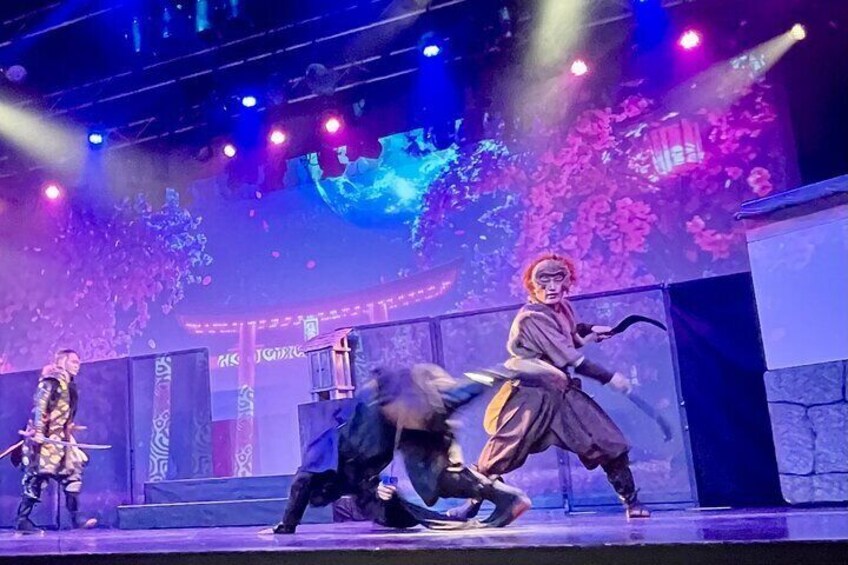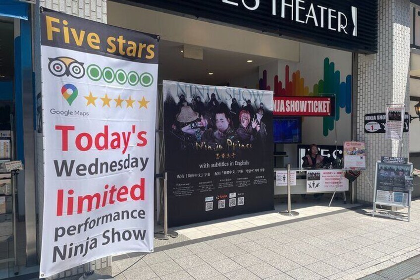 Un sacco di ninja con azioni dinamiche. La storia che non solo i bambini ma anche gli adulti possono godere. Sono disponibili sottotitoli in inglese, coreano, cinese tradizionale e semplificato. 10 minuti a piedi da Dotonbori - una famosa attrazione turistica di Osaka. [Storia] Un giorno, mentre i giorni di pace passano, un ninja si intrufolò in un castello e rubò una tazza di tè d'oro che si dice che chiunque la otterrà governerà il mondo... Il principe del Clan Godai - che ha protetto la ciotola per generazioni, Takemaru, è un principe debole che è bravo solo a nascondersi ma combattere. C'è qualche possibilità che un tale principe possa raccogliere il suo coraggio per proteggere la tazza di tè d'oro? Tutto da raccontare a The Ninja Prince - uno spettacolo ninja in cui i ninja che usano il ninjutsu e una bestia leggendaria si presentano tutti.