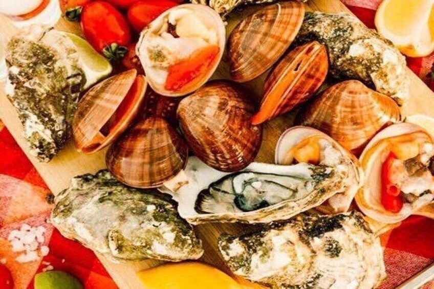 *Supplemento Ostriche o Vongole 40€ a persona per l'intera prenotazione, comprende 5 pezzi a persona.