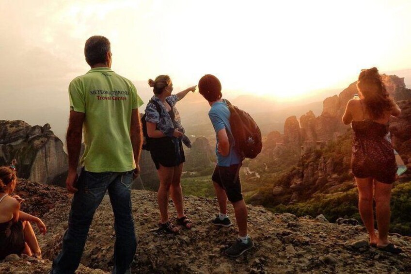 Alla fine del tour, ti porteremo nel miglior punto panoramico sugli scogli per vedere il sole tramontare dietro la catena montuosa di Pindos o secondo la mitologia greca, vedrai Dio Helios sul suo carro infuocato che porta i suoi cavalli a riposare. Scatta foto mentre la luce cangiante dipinge il paesaggio cambiando tonalità di rosa e oro prima di tornare indietro nel minibus per il viaggio di ritorno al tuo hotel.