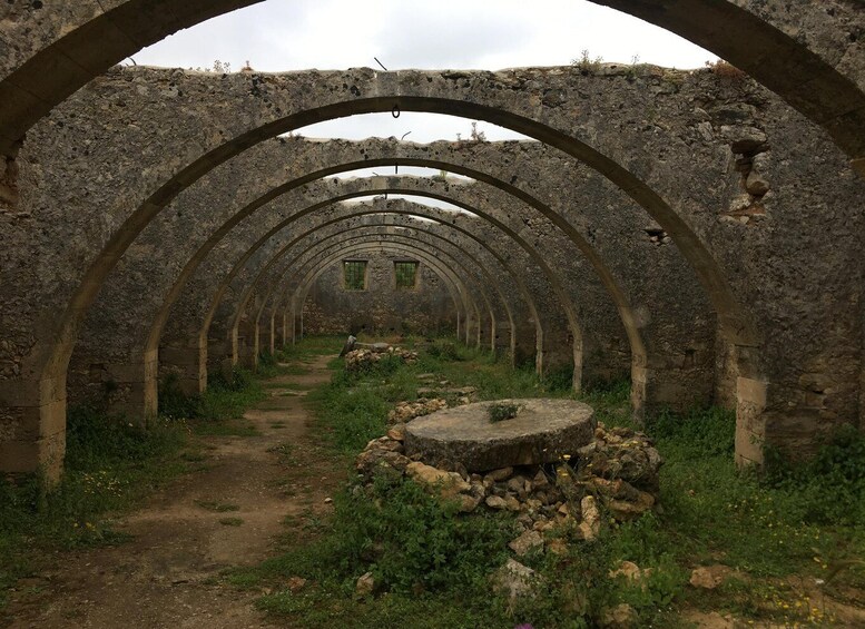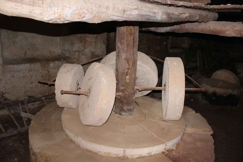 Dopo questo tour, proseguiamo per visitare un antico frantoio, dove inizieremo a capire come venivano lavorate le olive secoli fa, dai nostri antenati cretesi. Stiamo facendo un giro completo della fabbrica di olio d'oliva, mentre ci fermiamo per un pranzo leggero o un caffè in un luogo pieno di vegetazione lussureggiante e fiumi che ci passano accanto. È un'occasione perfetta per parlare anche della regione di Apokoronas e dei villaggi di Apokoronas in cui si svolge il tour. Ci divertiamo a osservare l'ambiente autentico e incontaminato, parlando della vita dei contadini di Creta e della flora e della fauna di Creta.