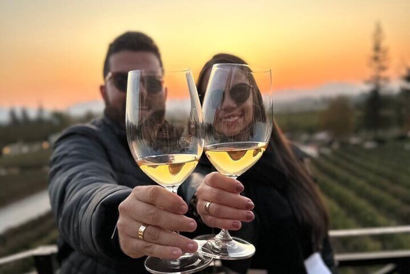 Tramonto all'azienda vinicola della famiglia Alyan con cena