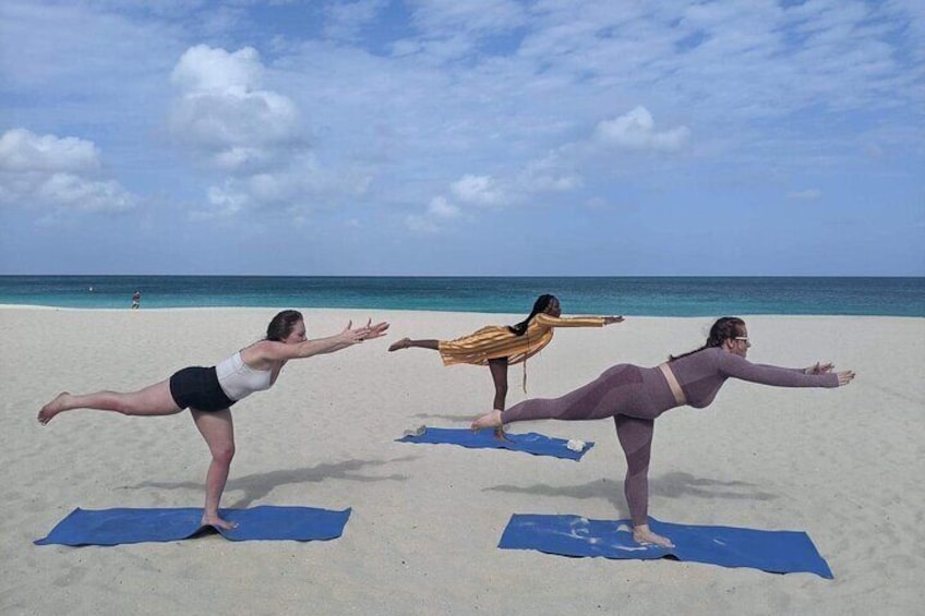 Yariyoga su Eagle Beach Aruba: Yoga al mattino o al tramonto in una delle dieci migliori spiagge della spiaggia dell'Aquila dei Caraibi, saremo seduti sotto gli alberi di uva del mare..